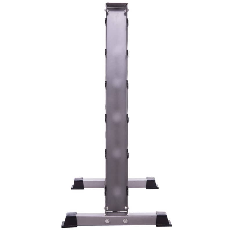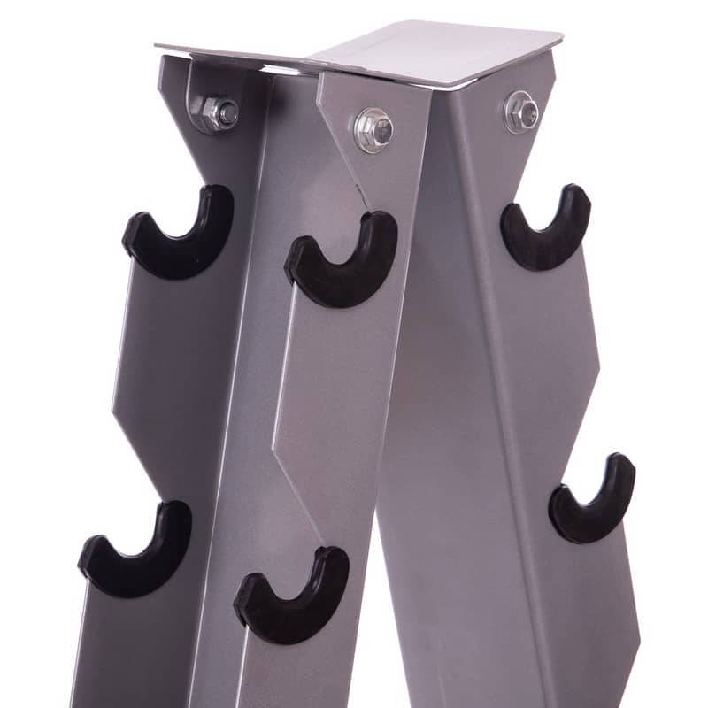 Вертикальна стійка для зберігання спортивного інвентарю - це важливий аксесуар для будь-якого тренажерного залу. Містка, міцна і зручна конструкція дасть змогу на невеликій площі зберігати відразу 12 гантелей. Великим плюсом цієї підставки є форма, завдяки якій інвентар, розташований зверху, не закриває собою нижні гантелі.