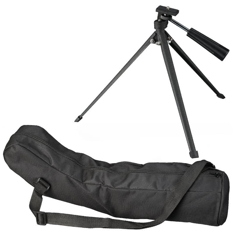 Гладке гумове покриття чорного кольору захищає прилад від пошкоджень і не допускає скупчення бруду на корпусі. Для максимального комфорту спостереження окуляр встановлений під кутом 45º. У комплект поставки входить настільний штатив-тринога для польових спостережень. Труба повертається в хомуті на 360º для досягнення найбільш зручного кута спостережень. Додатково труба має 4 чітких положення в хомуті, які дозволять без проблем зафіксувати трубу з кроком в 90º. Для зручності транспортування і зберігання можна використовувати м'який текстильний чохол на замку.