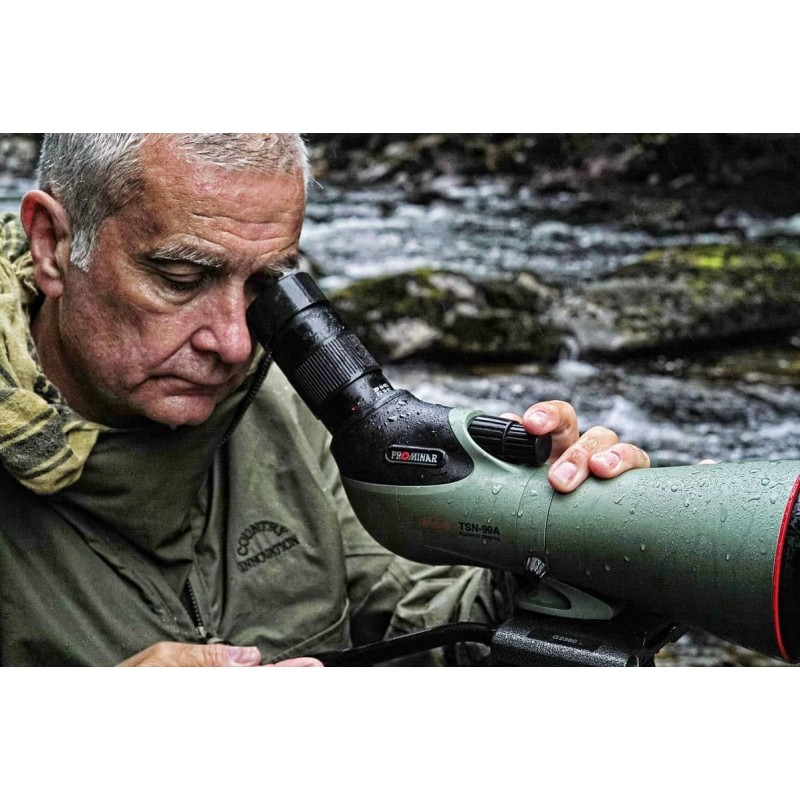 Kowa Sporting Optics це єдина компанія в світі, котра при виготовлені оптичних лінз, для своїх флагманських моделей підзорних труб, використовує високоякісний флюоритовий кристал Pure Fluorite Crystal. Підзорна труба Kowa TSN-99A 30-70x99/45 Prominar Kit (12264) спроектована та виготовлена в Японії з використанням найвищих стандартів, та є гордістю компанії. У їх конструкції використовуються оптичні компоненти та матеріали вищої якості. Підзорна труба Kowa TSN-99A 30-70x99/45 Prominar Kit (12264) оснащена великим 99 мм об'єктивом, виготовленим із застосуванням кристалічних лінз із чистого флюориту. Труба також укомплектована окуляром з перемінною кратністью Kowa TE-11WZ II 30-70x котрий надає збільшення до 70 крат. Призми з фазовою корекцією та лінзи з повним багатошаровим просвітленням забезпечують чітке, різке зображення з відмінною деталізацією. Зображення настільки кришталево чисте, що можна спостерігати повітря. Полегшений ергономічний корпус труби Kowa TSN-99A 30-70x99/45 Prominar Kit (12264) є цілісним і виготовлений з магнієвого сплаву. Конструкція має високий рівень водонепроникності та продута сухим азотом, що запобігає запотіванню оптики при різких змінах температури.
