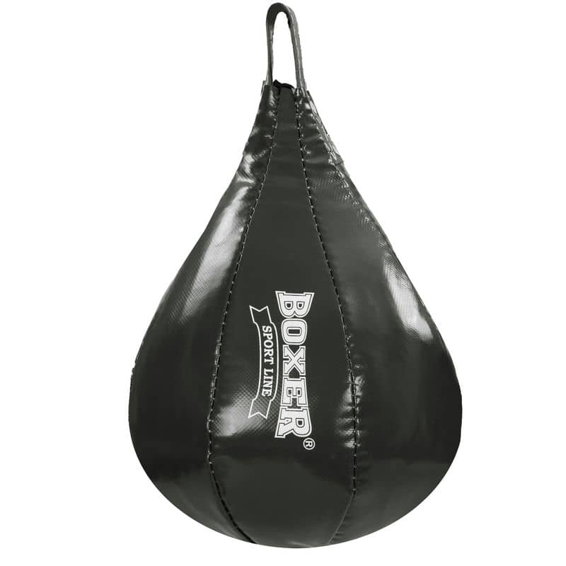 Підвісна боксерська груша з текстильним матеріалом в якості набивки відмінно підійде для новачків і просунутих спортсменів. Боксерська груша BOXER 1014-02 має розмір 35×24 см і краплеподібну форму, яка підходить для відпрацювання ударів в голову. Для виготовлення груші виробник використовував високоякісний синтетичний матеріал - полівінілхлорид. Завдяки застосуванню тканинної набивки груша зберігає пружність, але при цьому є відносно м'якою. За петлю зверху її можна зафіксувати на підвісному кріпленні. Груша має невелику вагу і довговічне покриття.