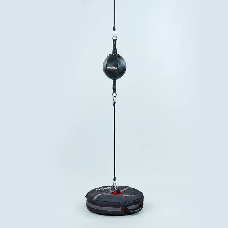Пневматична боксерська груша MAXXMMA SD01KIT має округлу форму і діаметр 22 см. Для установки даної груші необхідно використовувати розтяжки. Спортивний снаряд комплектується спеціальною основою-обважнювачем, за яку можна зачепити нижнє кріплення. Завдяки використанню розтяжок вдається домогтися того, щоб груша швидко поверталася у вихідне положення після удару, але при цьому вона має можливість рухатися в горизонтальній площині. Це ускладнює завдання для спортсмена. Обважнювач виготовлений з тканини і заповнений наповнювачем. На ньому є ручка для зручного перенесення. Пневматична груша виготовлена з поліуретану, в складеному вигляді займає мінімум місця.