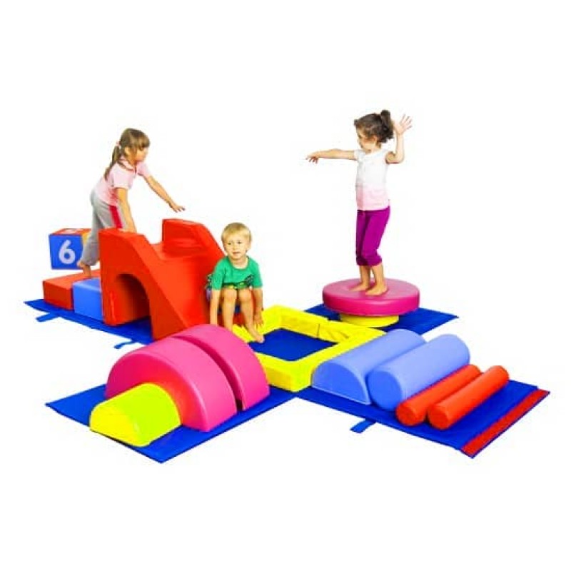 Опис: являє собою м'який спортивно-ігровий тренажер для активного фізичного розвитку дитини (балансування, перекиди, перевороти, повзання, стрибки та ін.). Призначений для колективних спортивних змагань, тренувань, навчальних програм фізичного розвитку. Безпечний для користування. Виріб є як окремої ігрової частиною, так і легко поєднується з іншими модульними конструкціями.