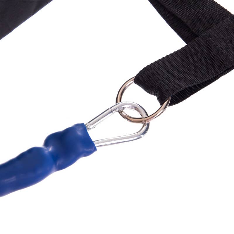 - Тренажер зроблений зі зносостійких матеріалів - гуми і поліестеру, все кріплення - кільця і карабіни - металеві.