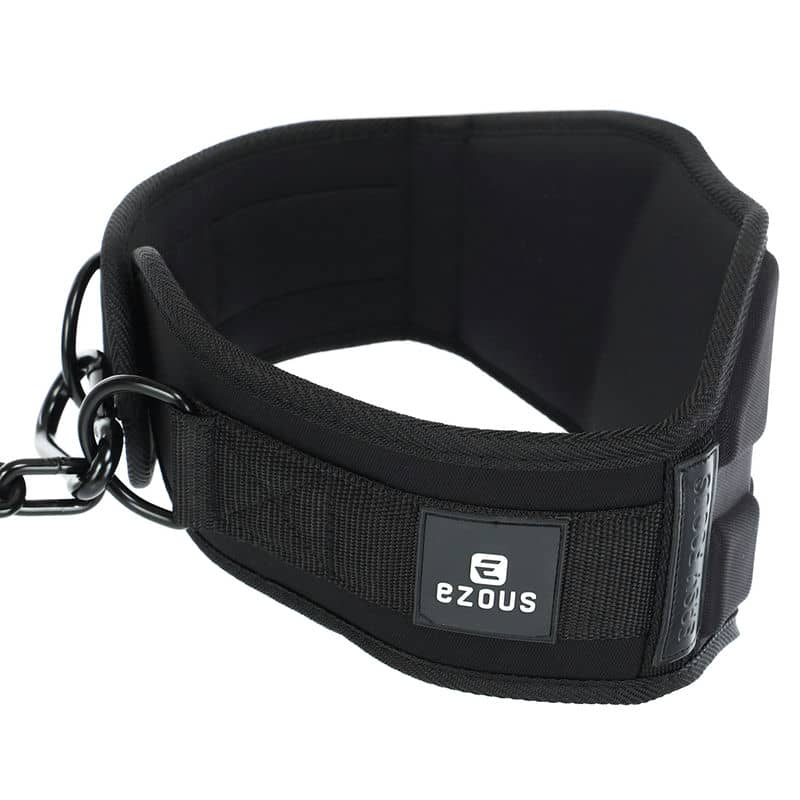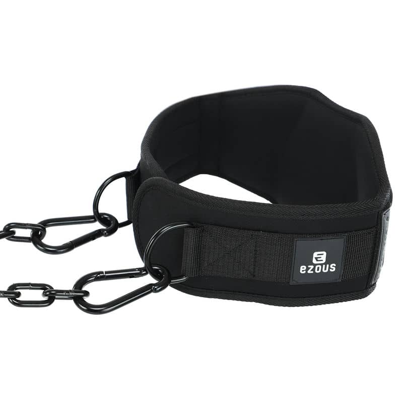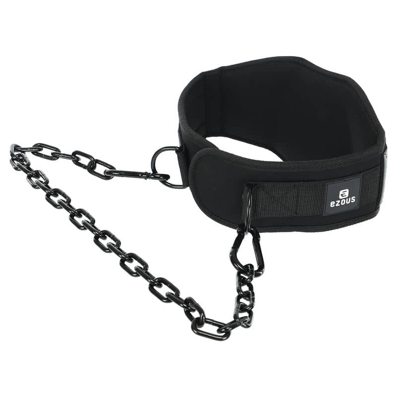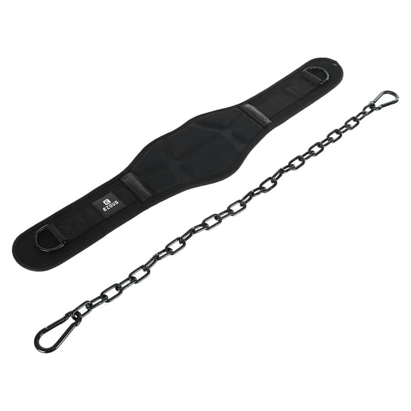 Пояс для обтяжень Dip Belt Armor Ezous зроблений зі щільної EVA оптимальної товщини. Він приємний до тіла, не натирає і дає змогу тренуватися з комфортом. Максимально широка зона пояса охоплює нижню частину спини. Завдяки м'якій підкладці вона щільно прилягає, повторюючи вигин попереку. Усі шви виконані посиленою ниткою високої міцності. Пояс не тисне на тазостегнову кістку і не сповзає під час виконання вправ. Як застібки використовуються металеві петлі та карабіни. Товстий ланцюг у комплекті використовується для зачепа обважнювачів.