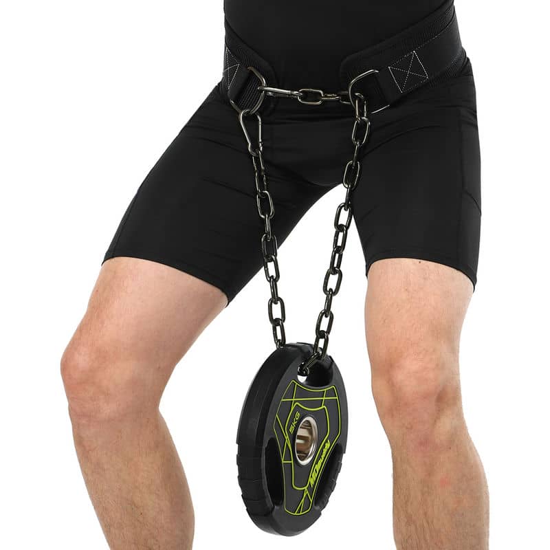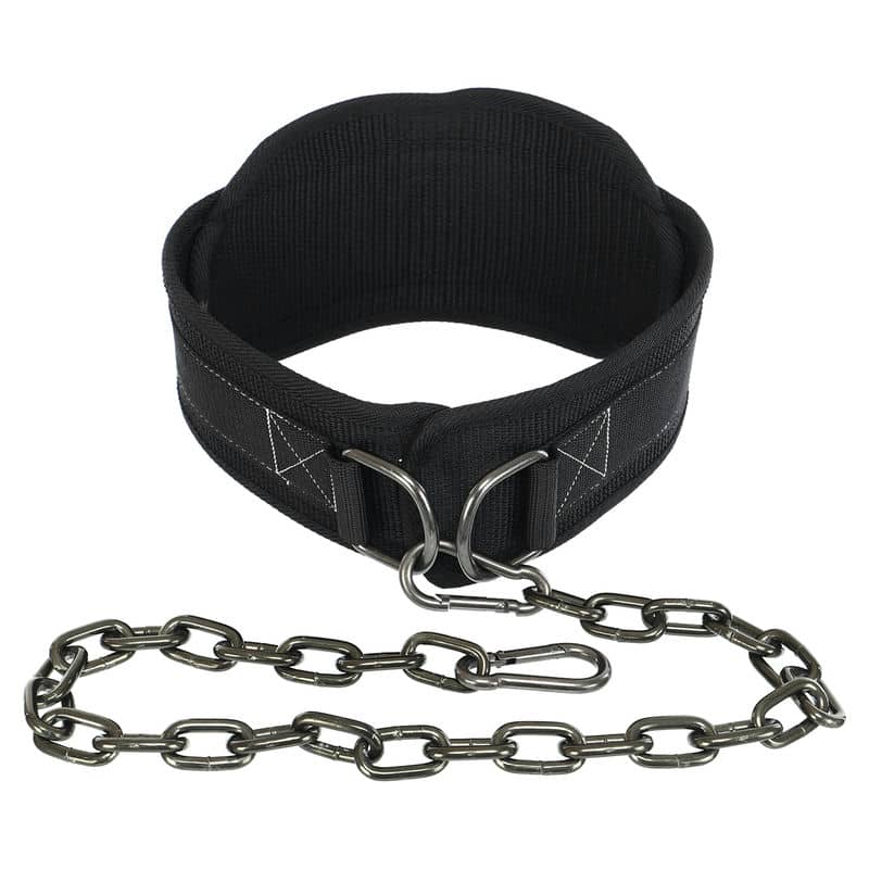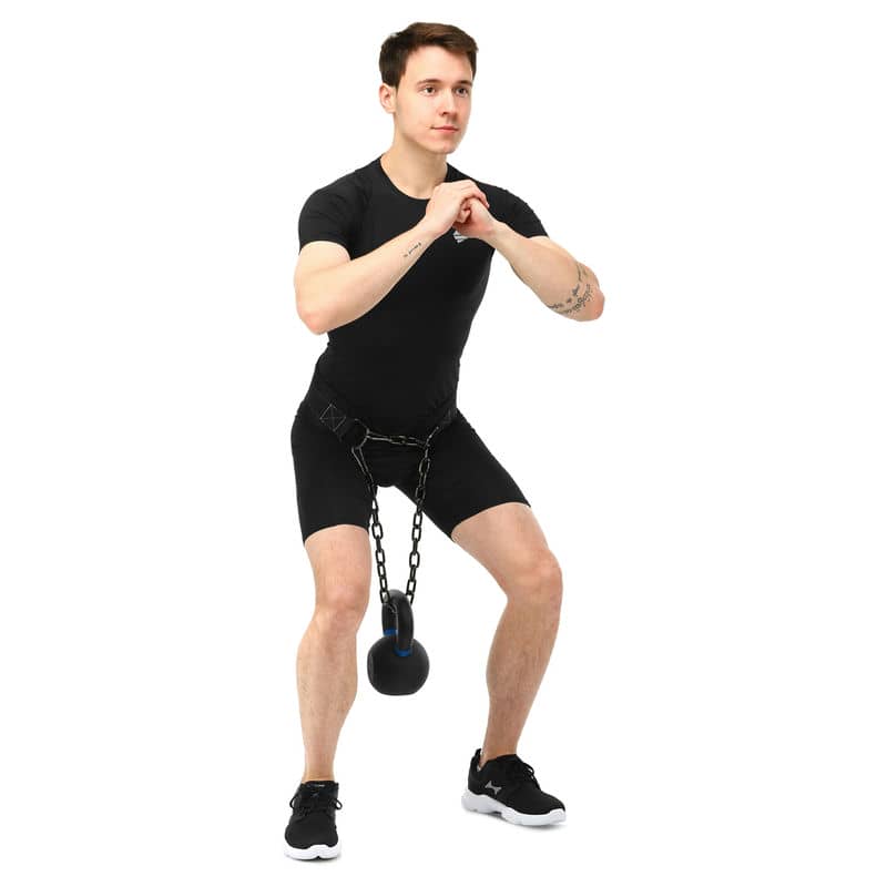 Виріб комплектується ланцюгом із двома карабінами для зачепа обважнювачів. З його допомогою можна використовувати спеціальний насипний або металевий інвентар для обтяження або ж пристебнути диски від штанги та гирі різної ваги.