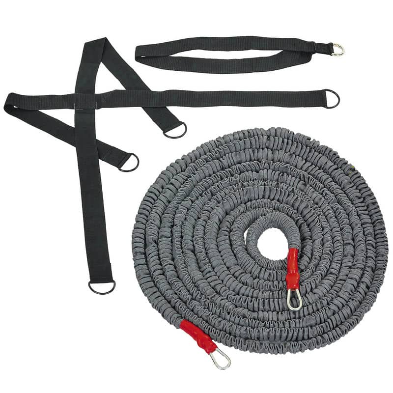 Вправи з поясом для вибігання розвивають здатність тримати та нарощувати прискорення після старту. Він розвиває силу та витривалість практично всіх м'язів. Система кріплення через корпус допомагає утримувати його у правильному положенні. Такий снаряд просто необхідний для бігунів, футболістів, хокеїстів, спортсменів, які займаються кросфітом і єдиноборствами. еластичного мотузкаа в обплетенні. Він з одного боку кріпиться до м'якої петлі-рукоятки, а з іншого до системи ремінців, які одягаються на корпус і фіксуються за допомогою карабіну. Деталі кріплення зроблені з металу, петлі та ремінці з поліестеру, а джгут гумовий. У комплекті з тренажером йде сумка, в якій його можна переносити та зберігати.