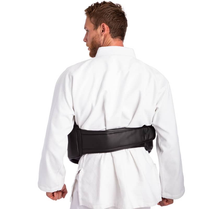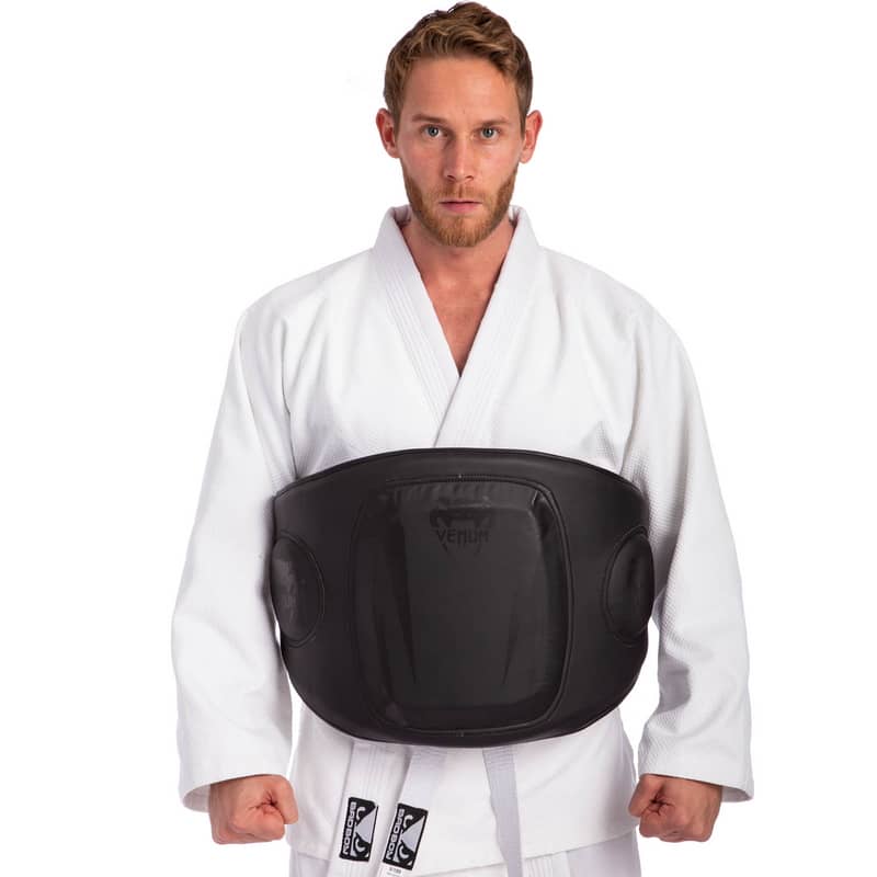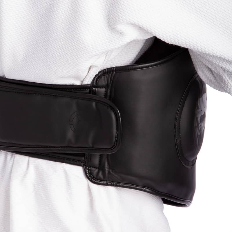 Захисна зона покриває живіт, боки та ребра, мінімізуючи ризик травм при прийомі потужних ударів руками чи ногами. Модель фіксується за допомогою зручної липучки, розташованої ззаду, що дозволяє точно підлаштувати пояс під обхват тіла.