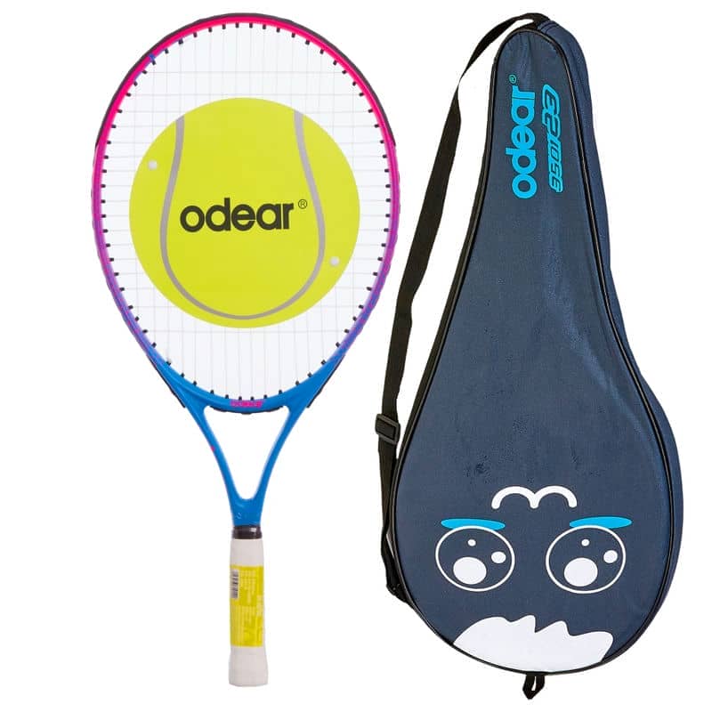 Легка дитяча ракетка для великого тенісу від ODEAR вирізняється міцністю конструкції та стильним дизайном. Снаряд виготовлений з алюмінію, що дає змогу використовувати ракетку як навченим гравцям, так і початківцям-аматорам. Метал досить міцний, щоб витримати похибки в техніці і дозволити насолоджуватися грою. Ручка ракетки покрита базовою обмоткою. Вона гасить вібрацію від удару, захищає зап'ястя, лікоть і плече від травм. Крім того, обмотка забезпечує комфорт гри, запобігаючи ковзанню ракетки і забезпечуючи більш щільний хват. Голова ракетки має велику площу струнного покриття, формула струн - відкрита. Потужна ракетка дає змогу виконувати сильні удари з мінімальним замахом. Дизайн ракетки виконано в яскравих, привабливих кольорах, у комплекті передбачено чохол.