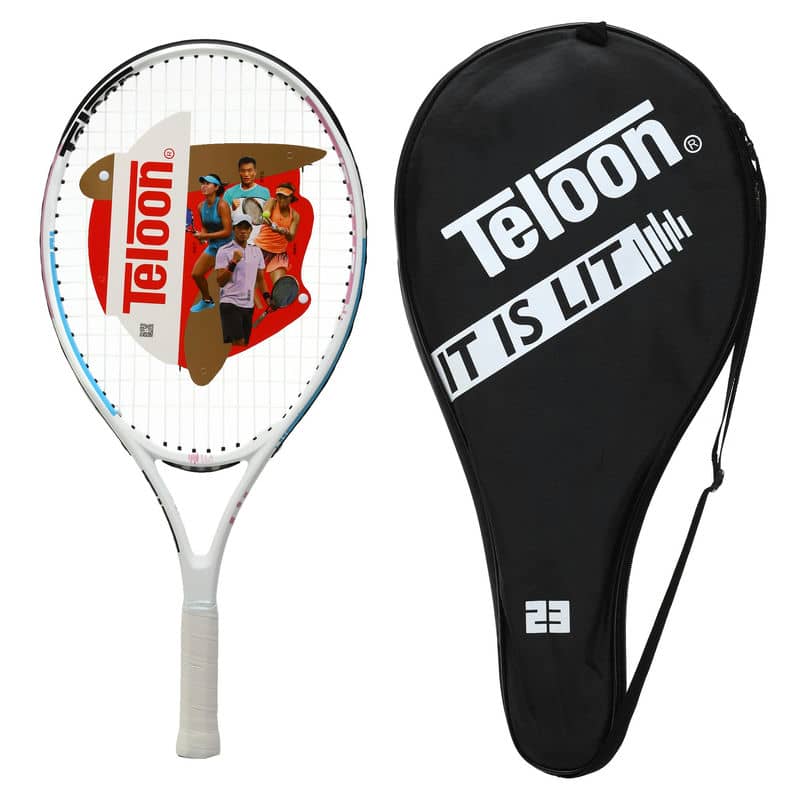 Ракетка від бренду TELOON - якісний і довговічний інвентар для тренувань дитини. Вона виготовлена з алюмінію. Матеріал має мінімальну вагу і хороший запас міцності. Це дозволяє гравцеві-початківцю безпечно освоїти ази техніки. Яскравий дизайн ракетки приверне увагу дитини.