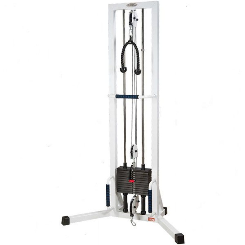 Ця професійна модель одинарного реабілітаційного тренажера - відмінний інструмент для занять кінестезією, який повинен бути в кожному реабілітаційному центрі. Він відрізняється високим ступенем надійності і більш уважним підходом до кожної деталі при розробці. Наприклад, на відміну від домашньої моделі, яка має полегшену конструкцію і необхідність кріплення до підлоги, ця блокова рама має більшу вагу і більшу площу опори. Вона не потребує додаткових кріпленнях, більш стійка і, відповідно, набагато надійніша домашньої моделі. Це ідеальний варіант для різних центрів з великою прохідністю, де важлива якість матеріалів і збірки, а також надійність кожної деталі. Завдяки співпраці з центром реабілітації доктора Бубновського, при створенні TB130 було враховано більшість побажань користувачів базової моделі. Спільними зусиллями вдалося зробити вдосконалений тренажер, який дозволяє залишатися в русі тим, хто потребує реабілітації та підтримці фізичної активності при обмежених можливостях. Діапазон рухів на різні м'язові групи: зміцнення і розтяжка м'язів спини: нижня і станова тяга, тяга однієї руки, нахили корпусу, пулловер з верхнього блоку; вправи на м'язи ніг і сідниць: присідання, пліє і випади з обтяженням, відведення ноги з нижнього блоку, опускання ніг з верхнього блоку; вправи на руки і плечі: згинання рук на біцепс різними хватами, розгинання рук на трицепс з різноманітними ручками; зміцнення м'язів черевного преса: скручування на прес, бічні нахили в бік на косі м'язи як з верхнього так і з нижнього блоку. Зручна і компактна конструкція дозволяє якісно опрацювати м'язи як в базових, так і в ізолюючих вправах, використовуючи обтяження або роботу з власною вагою. Блокову раму можна використовувати в якості опори, наприклад, з балансувальною подушкою або бодiбаром, а також включити в роботу мале аеробне обладнання - еспандери, які кріпляться на раму. Вага регулюються штирем, що дозволяє "перемикати" обтяження легко і швидко. А різні елементи допоможуть налаштувати тренажер під ваш тренувальний комплекс. Комплектація: вантажний блок (60 кг), трос і карабін. Кріплення до стіни або підлоги не обов'язкове. Ручки для тяг і манжети у вартість не входять.