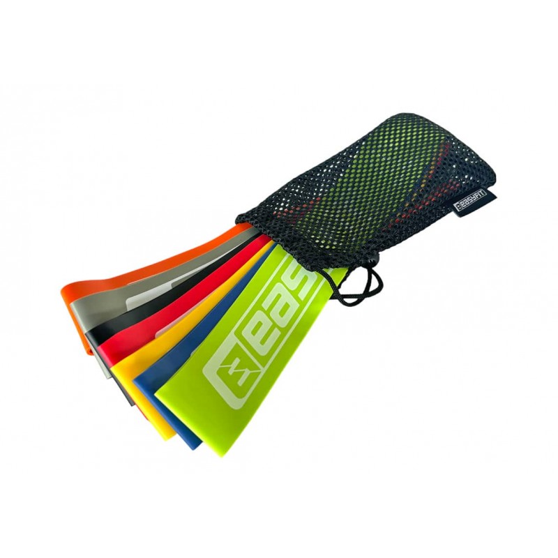 Комплект еластичних гумок для фітнесу EasyFit складається з 7 петель з різним ступенем опору. Широкий діапазон опорів забезпечує ефективні тренування. Кожна петля EasyFit є кільцем довжиною 60 см і шириною 5 см, виготовленим зі 100% натурального латексу, що забезпечує довговічність і надійність у використанні.