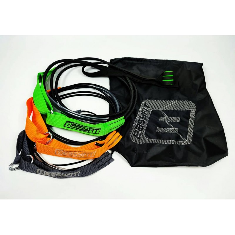 Великий комплекс вправ. На відміну від кільцевої гумки за допомогою такого тренажера можна виконувати набагато більше різних вправ. Еспандер EasyFit дає можливість одночасно та незалежно виконувати рухи кожною рукою (або ногою). За допомогою однієї гумки такого конструктиву можна, наприклад, виконувати розведення, імітувати роботу з гантелями (на горизонтальній лаві або виставленій під кутом), всілякі жими та верхні тяги, вправи з гирею, почергове підняття рук на біцепс та інші. Фактично комплекс вправ обмежується лише фантазією користувача.
