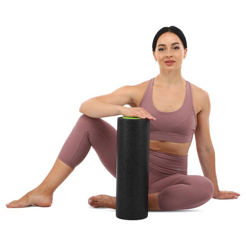 Ролер для йоги та пілатесу гладкий FitGo 450x150 мм, чорний-салатовий, код: FI-9327-45_BKLG