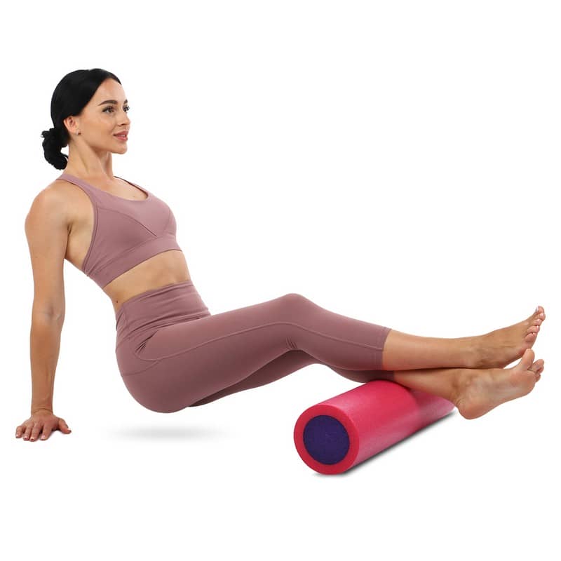Ролер для йоги та пілатесу гладкий FitGo 600x150 мм, рожевий-фіолетовий, код: FI-9327-60_PV
