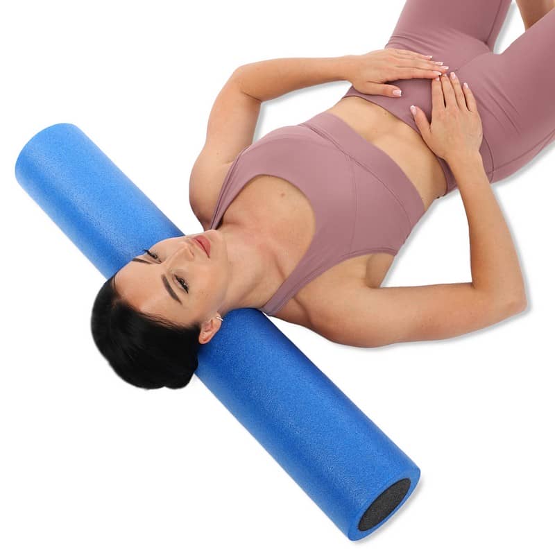 Ролер для йоги та пілатесу гладкий FitGo 900x150 мм, синій-чорний, код: FI-9327-90_BLBK
