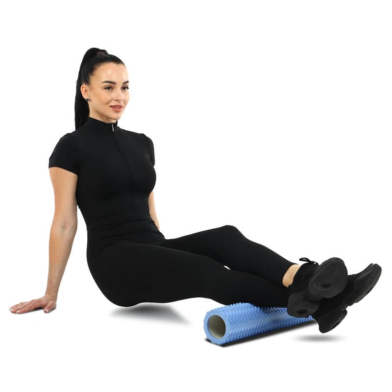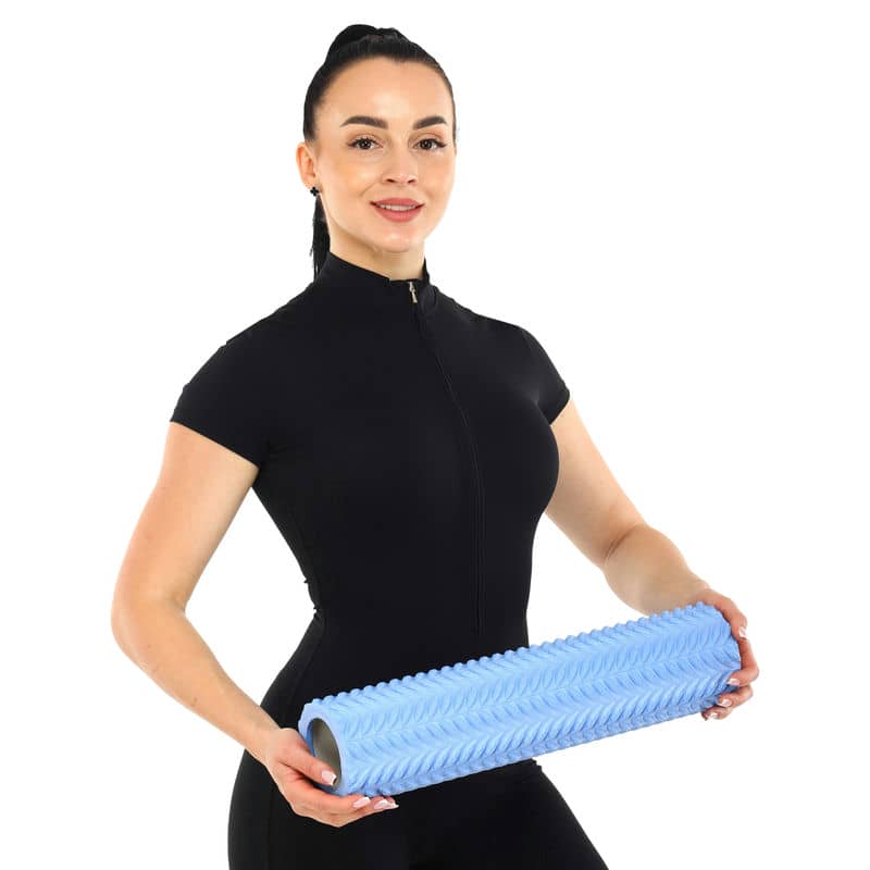 Ролер масажний циліндр (ролик мфр) FitGo Grid Line Roller, 450x105 мм, блакитний, код: FI-9387_N
