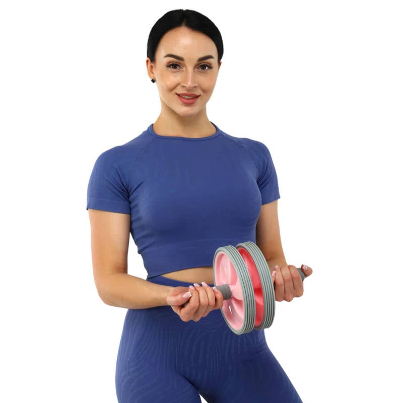 Ролик для пресу подвійний FitGo D180mm, рожевий, код: FI-7146_P