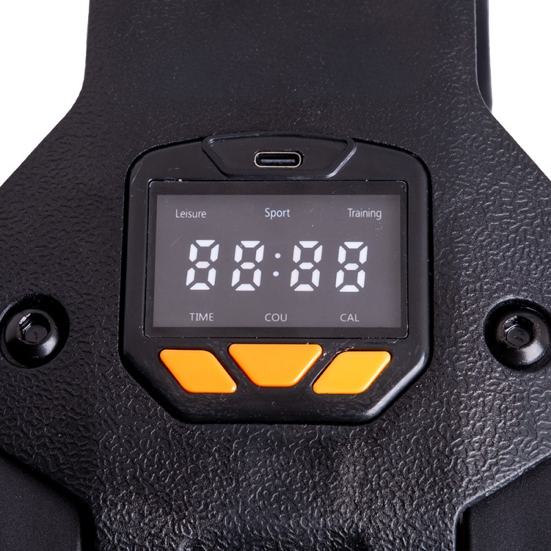 Дві особливості ролика привернуть вашу увагу – цифровий екран і складна конструкція . Екран дозволяє відстежувати час виконання вправ, кількість повторень і спалені калорії. Має три режими вправ . Режим «Дозвілля» дозволяє займатися без встановленого часу; у спортивному режимі ви встановлюєте таймер, який відраховує час, що залишився для проходження кола; а в режимі Тренування підраховується кількість повторень. Екран живиться від кабелю USB-C, який, на жаль, не входить в комплект.