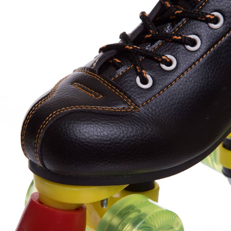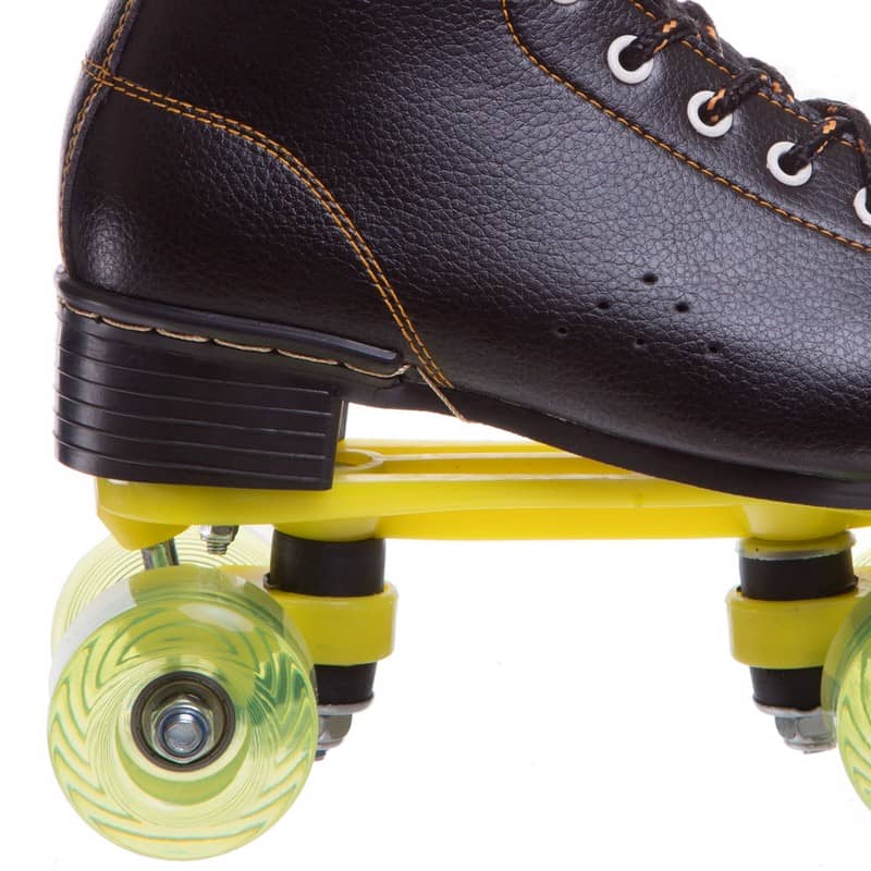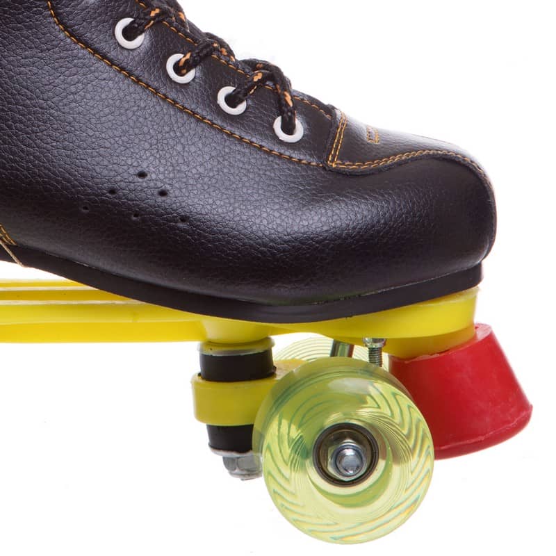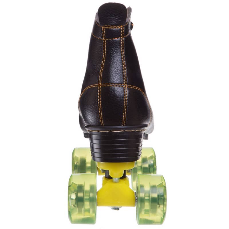 Зручний черевик виконаний у ретро стилі із синтетичної PVC-шкіри. Він має невеликий каблук, центр ваги зміщений уперед. Для фіксації на нозі використовується шнурівка. Платформа роликів (рама) виготовлена з ударостійкого пластику. Вона менш міцна ніж алюмінієві, але має меншу вагу, що дає змогу кататися без відчуття втоми як дорослим, так і дітям. На передній і задній осі закріплені по два м'яких поліуретанових колеса, діаметром 54 мм. Маленькі колеса роблять ролики більш маневровими і легко керованими. Якісні підшипники класу ABEC-7 забезпечують їхній м'який і плавний хід. Жорсткість коліс - 82А. Це м'які колеса, що мають хороші адгезивні властивості. Вони менше ковзають і здатні гасити вібрації, згладжуючи нерівності поверхні. У передній частині (на шкарпетці) кожного ковзана розташоване жорстке гальмо, що дає змогу не тільки зменшити швидкість до повної зупинки, а й відштовхнутися від поверхні для плавного початку руху.