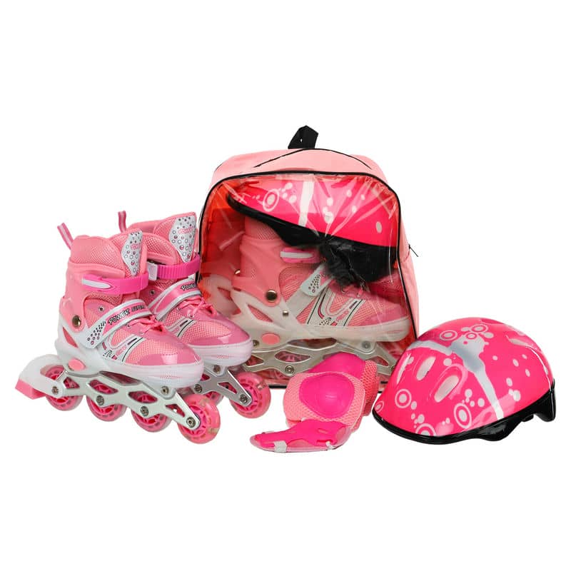 Роликові ковзани розсувні дитячі із захистом й шоломом у комплекті Fei Bao S (31-34), рожевий, код: SK-9456_SP