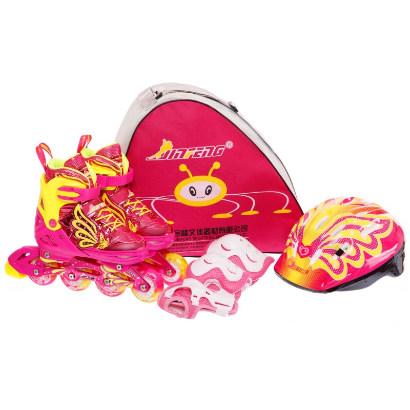 Роликові ковзани розсувні дитячі Jingfeng із захистом, розмір M (35-38), рожевий, код: 189_MP