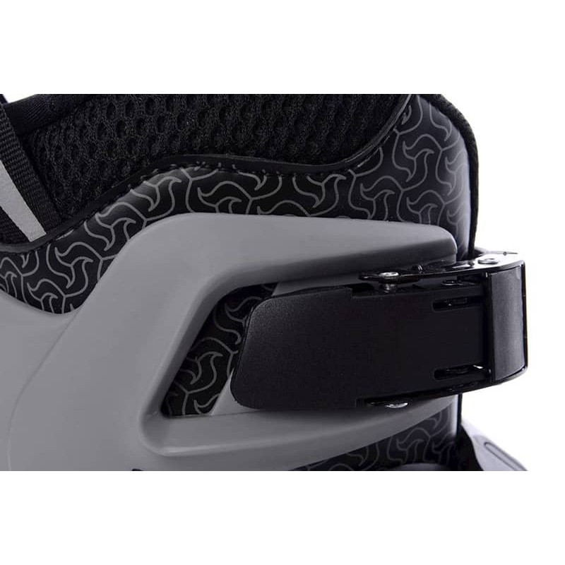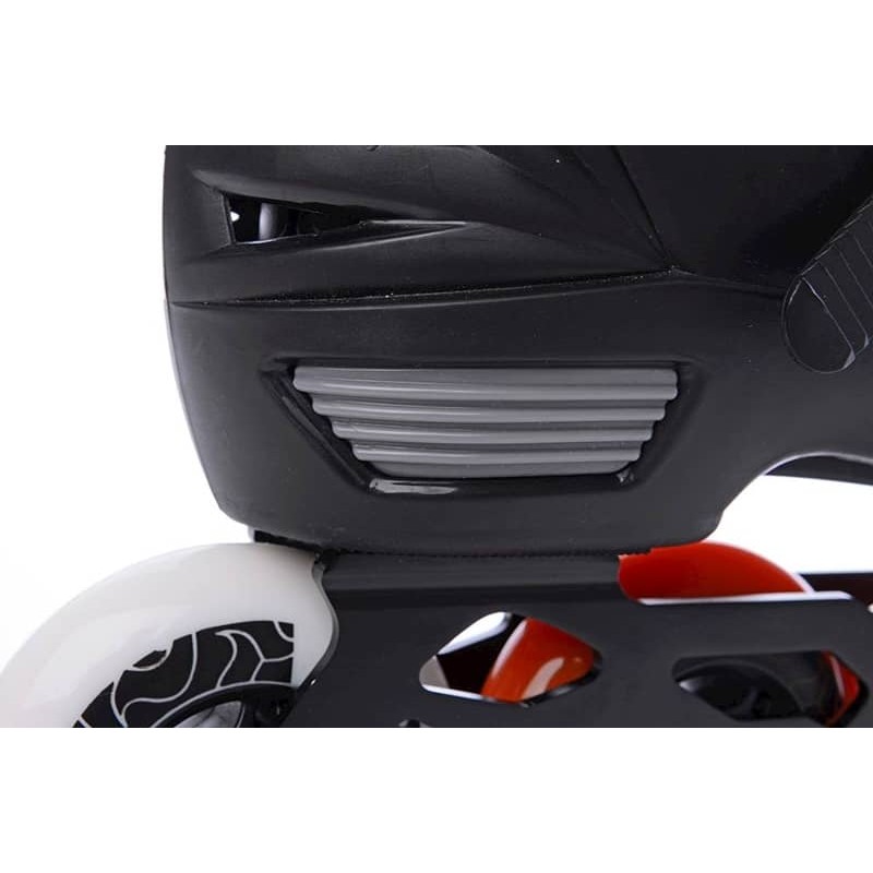 Модель має просту систему регулювання розміру з кнопкою на бічній частині каркаса. Черевик можна відрегулювати в діапазоні чотирьох значень. Пластиковий каркас пристрою дуже міцний і забезпечує надійну підтримку під час катання. Внутрішній черевик добре укріплений, а ремінець з підйомом має мікро застібку, яка забезпечує надійне кріплення і посадку стопи у взутті. Зовнішні пристрої захисту кріпляться двома гвинтами і можуть бути замінені в разі їх пошкодження. Ролики оснащені знімними підшипниками ABEC 7, які виконані з хромованої сталі з гумовим покриттям. Конструкція каркаса і шасі розроблена для високої керованості на дорозі. Шасі можна індивідуально відрегулювати спереду, в залежності від стилю їзди і комфортного центру ваги роллера. Ще однією особливістю моделі є амортизатор, який розташований в каркасі під п'ятою. Він поглинає і послаблює передачу вібрації від нерівностей на дорозі до ноги, роблячи поїздку більш комфортною і безпечною. У комплект входить 2 пари амортизаторів і 2 пари шнурків, оранжевого і зеленого кольору. Заміна цих деталей займає всього кілька хвилин.