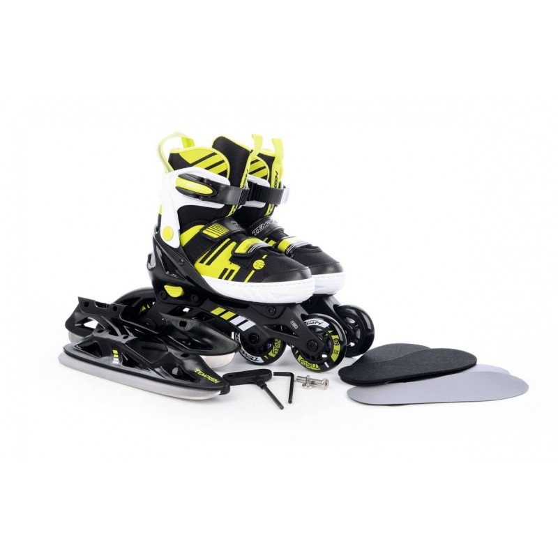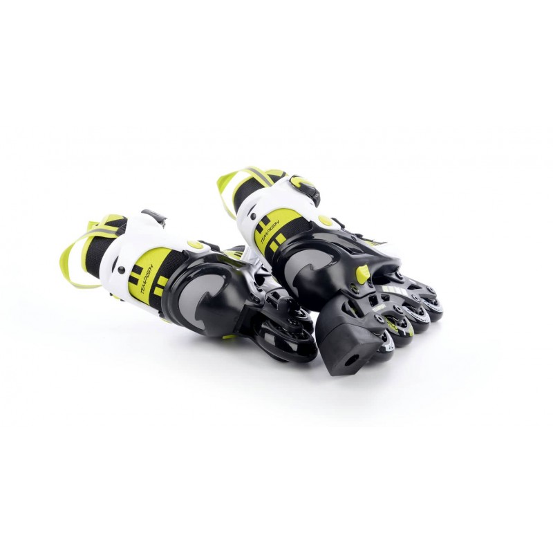 якісні дитячі роликові ковзани з розсувним механізмом, що дозволяє регулювати модель в межах чотирьох значень розміру. Кожен розмір має колеса різного діаметру, ширина при цьому залишається незмінною і дозволяє однаково добре себе почувати на дорожньому покритті дитині будь-якого віку. Основною особливістю Misty Duo є ударостійка змінна рама. Влітку дитина зможе кататися по рівному асфальту, а взимку навчатися тонкощам їзди на льоду, адже змінна рама має не колеса, а льодове лезо! При цьому, вона витримує великі навантаження, пов'язані з падіннями або неправильною технікою їзди. Високоякісні підшипники з вуглецевої сталі виконані згідно класу точності ABEC 5 і мають великий ресурс роботи. Це означає, що дитина зможе використовувати дані ролики довше, ніж аналоги на підшипниках ABEC 3. Сталь з підвищеним вмістом вуглецю забезпечує запчастини високу міцність і стійкість до імпульсних навантажень. Фіксація здійснюється за рахунок двох липучок і одного ремінця на автоматичній, стягує засувці. Для більш високої безпеки в темний час доби, Misty оснащені світловідбиваючими елементами. Це не тільки дозволить не переживати за дитину батькам, а й не втрачати його з уваги.