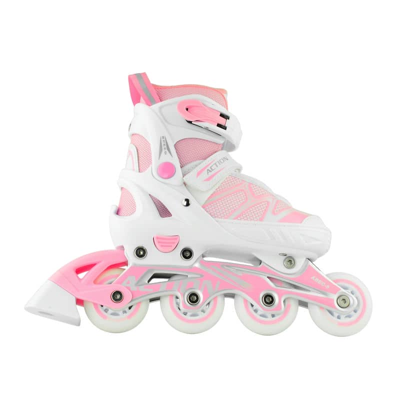 Дитячі роликові ковзани Action Riply зі спеціальною конструкцією 2-в-1, яка дозволяє кататися цілий рік. Проста система дозволяє замінити льодові леза на роликові шасі, і навпаки, за лічені хвилини. Досить просто відкрутити осі кріплення шасі до черевика, вибрати потрібне шасі і прикрутити його. (Необхідні для цього шестигранники поставляються в комплекті). >Чотинка легка, виготовлена з міцного, але м'якого нейлону;