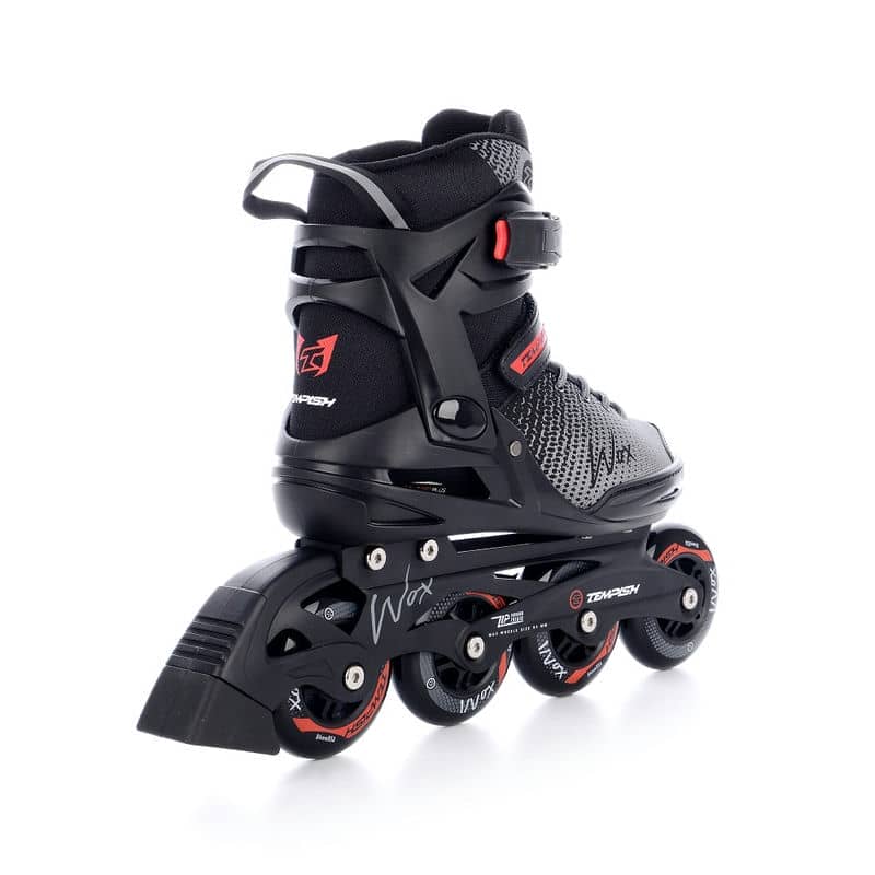 Фіксація черевика на нозі здійснюється за рахунок шнурівки, ременя на липучці, і ременя на авто застібці в зоні гомілки. Все разом це гарантує надійне утримання роликів на ногах без ризику зісковзувань. У задній частині, для комфорту, є петля. З її допомогою можна надягати і знімати взуття, а також переносити і зберігати. Світловідбиваючі елементи забезпечують додаткову безпеку, роблячи вас помітним в темний час доби.