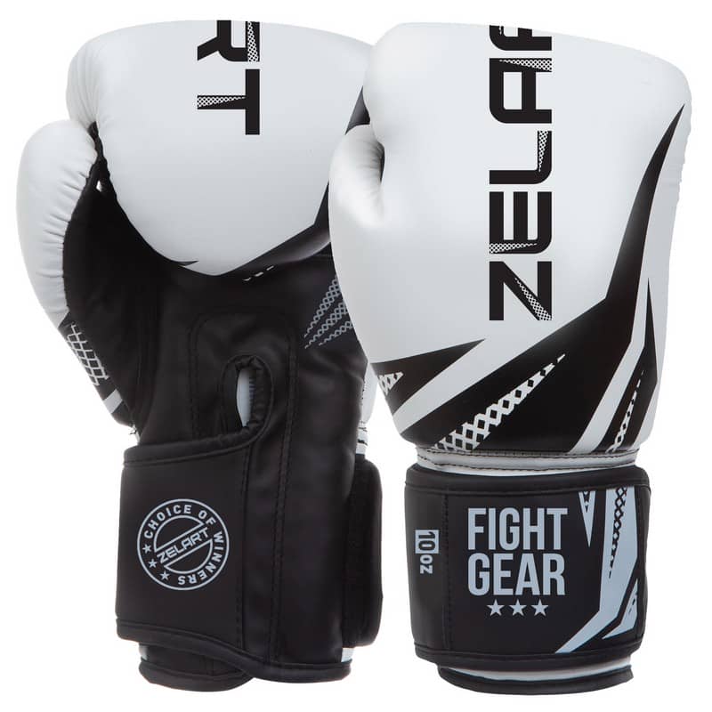 Рукавички боксерські на липучці Zelart 10 унції, білий-чорний, код: BO-0866_10WBK
