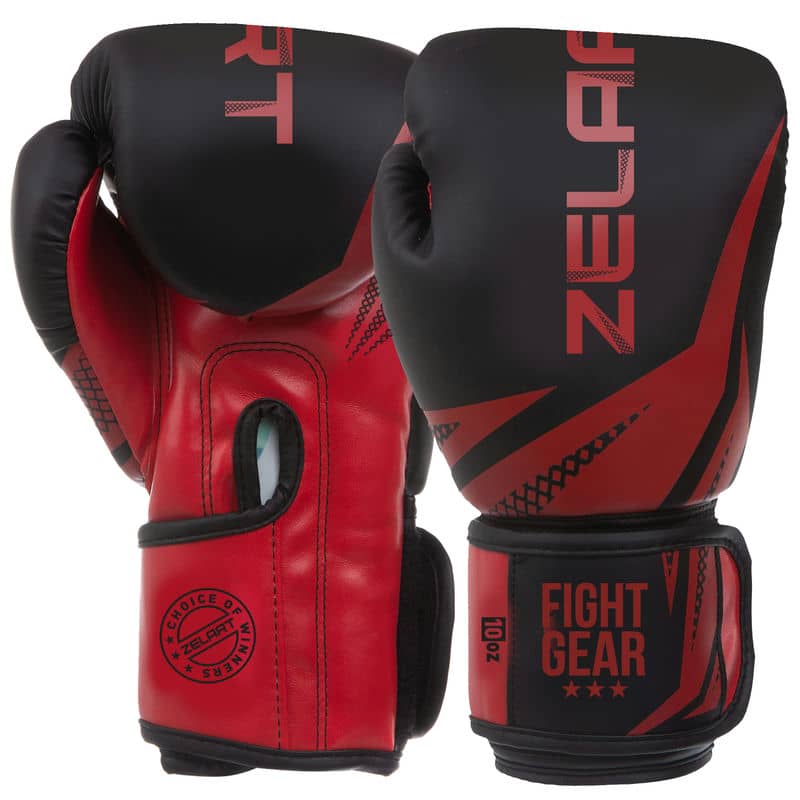 Рукавички боксерські на липучці Zelart 10 унції, чорний-червоний, код: BO-0866_10BKR