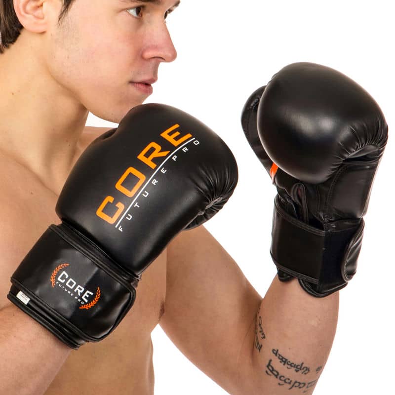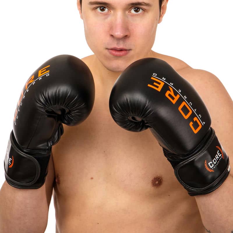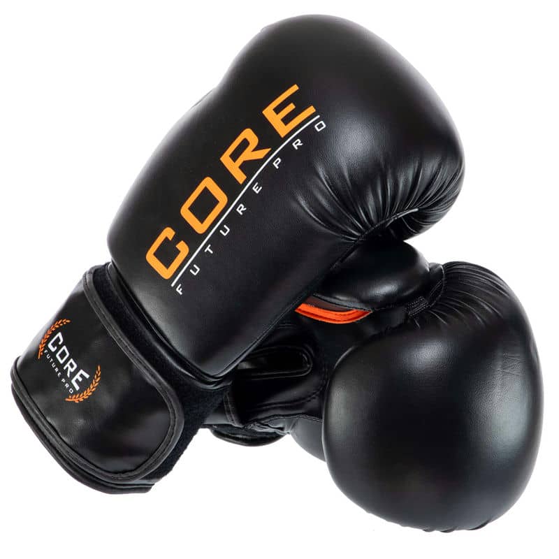 Рукавички боксерські шкіряні Core 12 унцій, черный-помаранчевий, код: BO-8541_12B