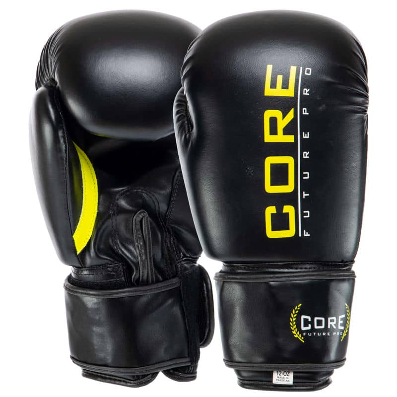 Рукавички боксерські шкіряні Core 12 унцій, черный-салатовий, код: BO-8541_12LG