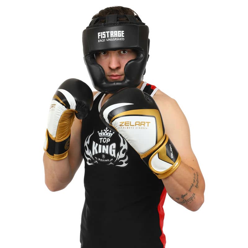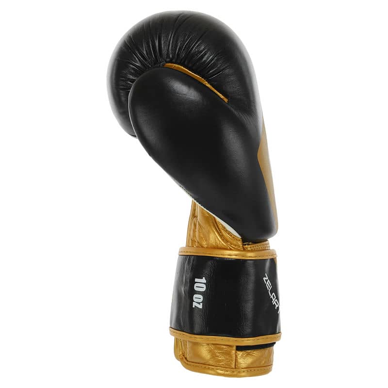 Рукавички боксерські шкіряні Zelart Contender 2.0 на липучці 10 унцій, чорний-золотий, код: VL-8202_10BKY