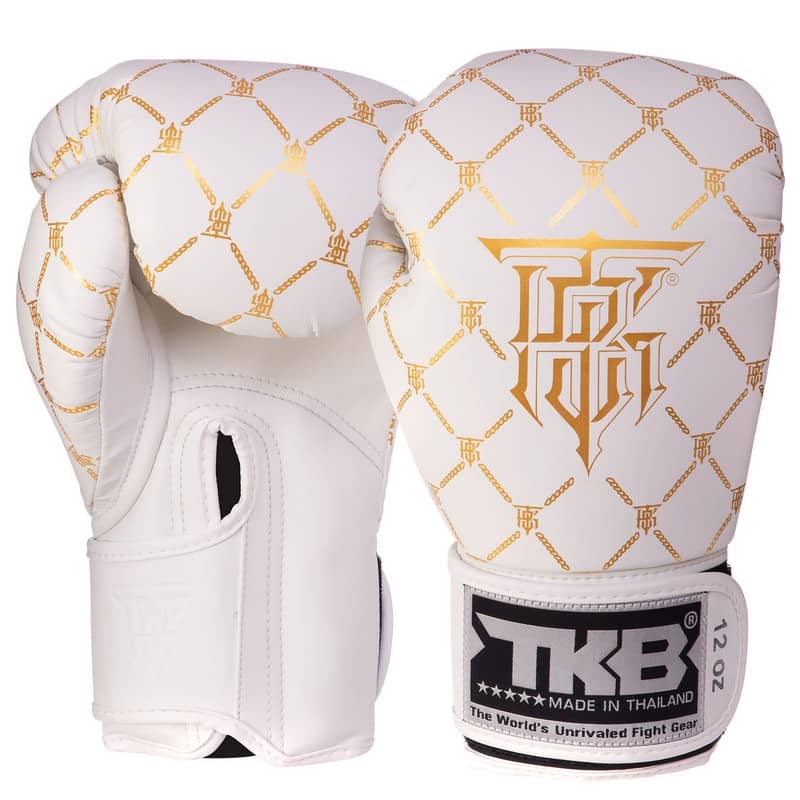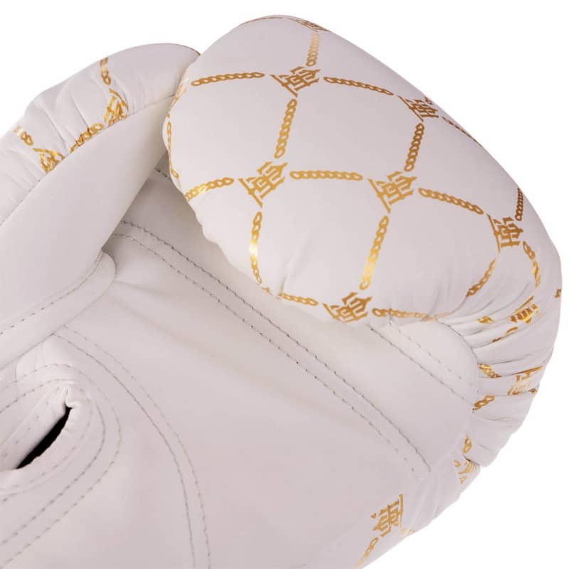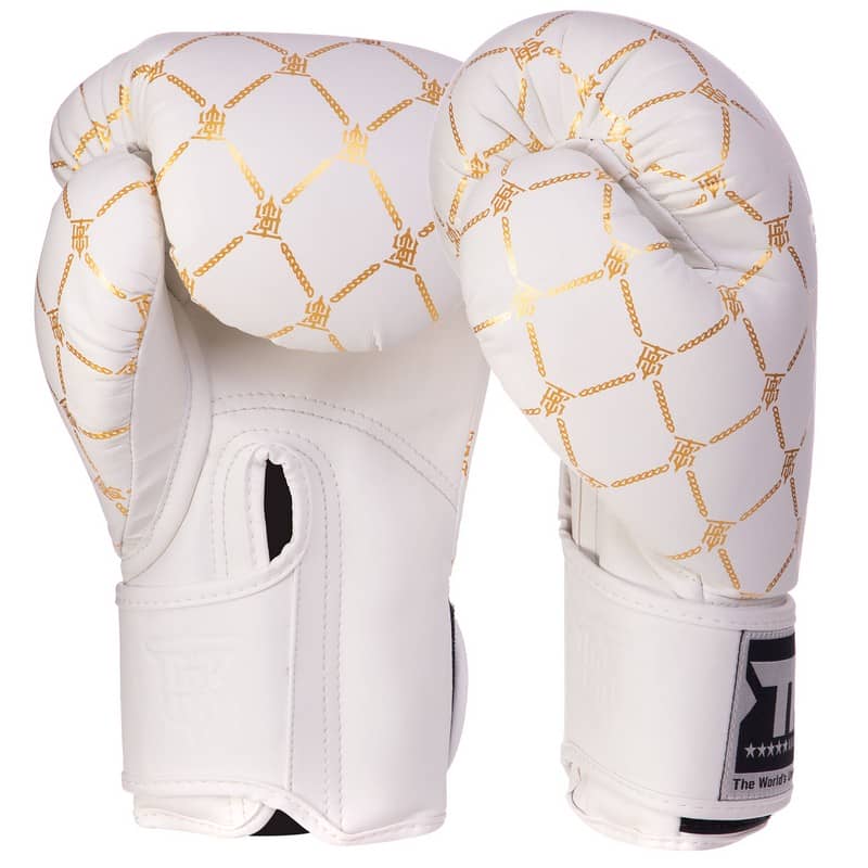 Рукавички боксерські Top King Chain шкіряні 8 унцій, білий-золотий, код: TKBGCH_8WG-S52