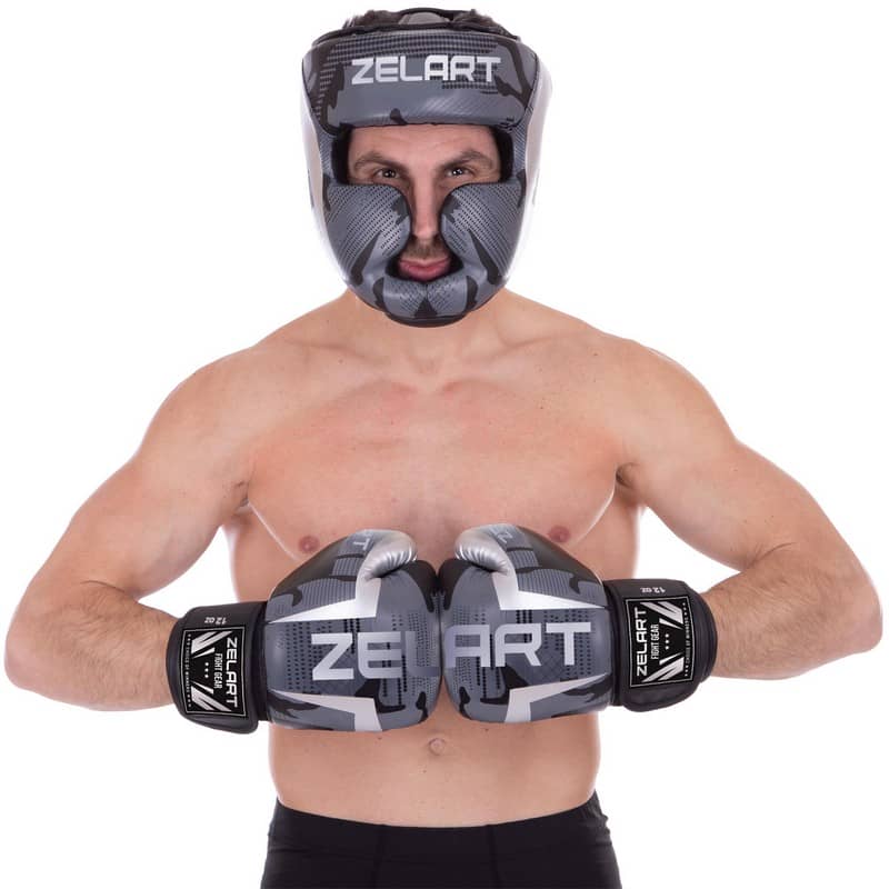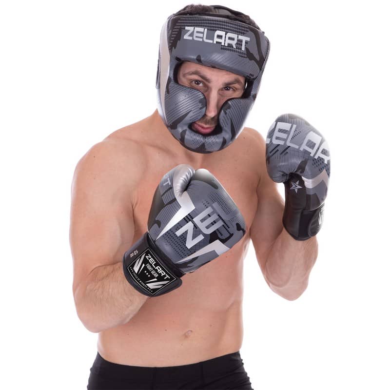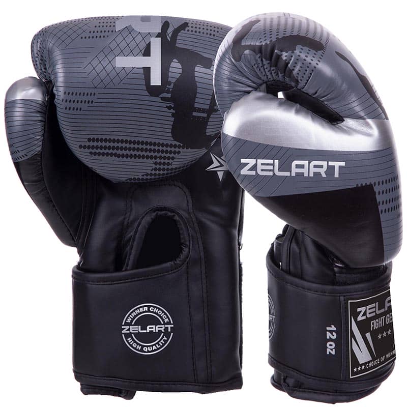 Рукавички боксерські Venum на липучці 6 унції, чорний-сірий, код: BO-2532_6BK