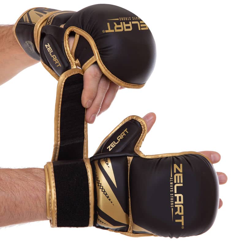Рукавички для змішаних єдиноборств Zelart розмір L, чорний-золотий, код: BO-3393_LBKG