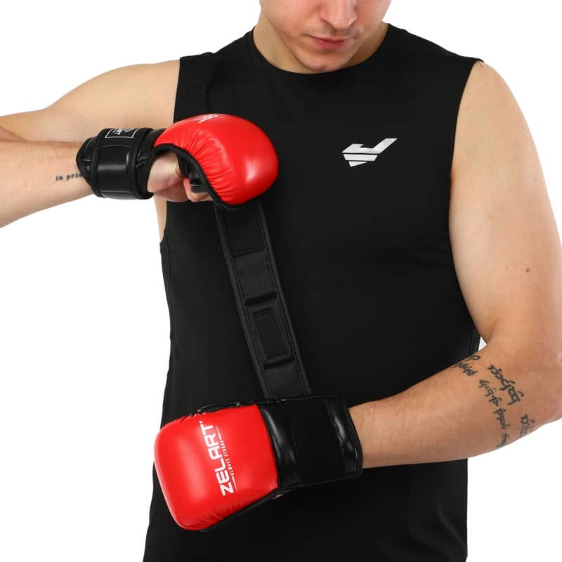 Рукавички гібридні для єдиноборств ММА Zelart L червоний-чорний, код: BO-4612_LRBK