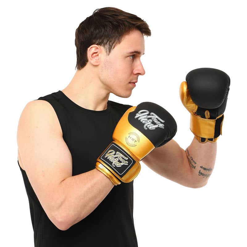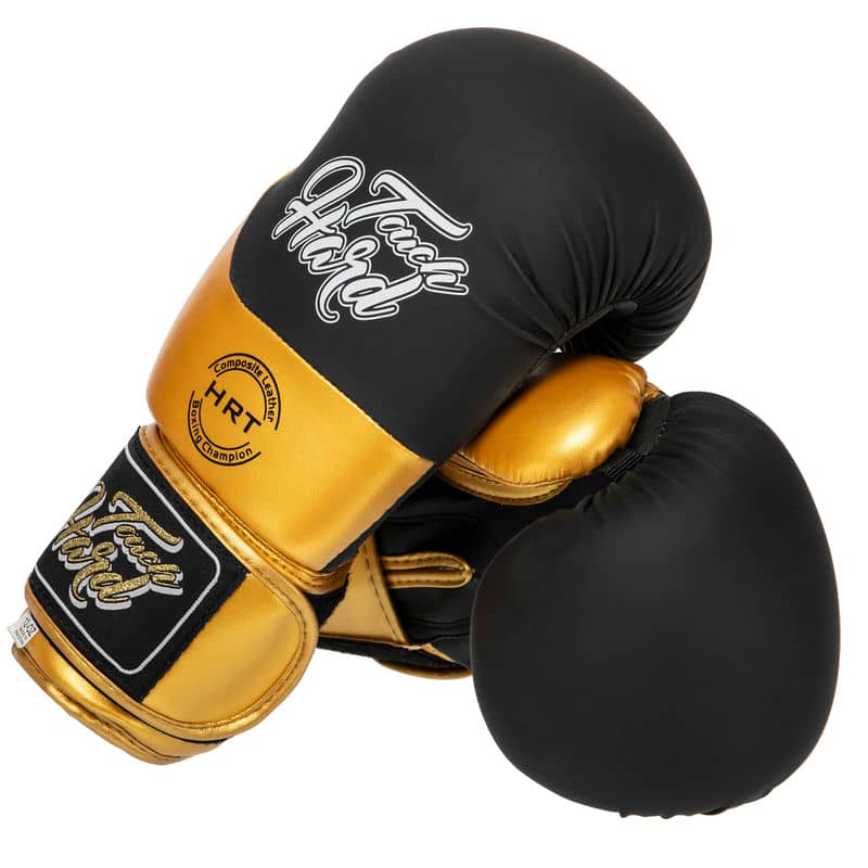 Рукавички шкіряні боксерські Hard Touch 14 унцій, чорний-золотий, код: BO-4439_14BKGO