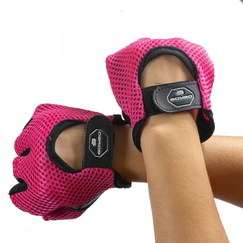 Рукавички велосипедні без пальців BoyBo шкіра/сітка рожеві, код: SF6-301-3