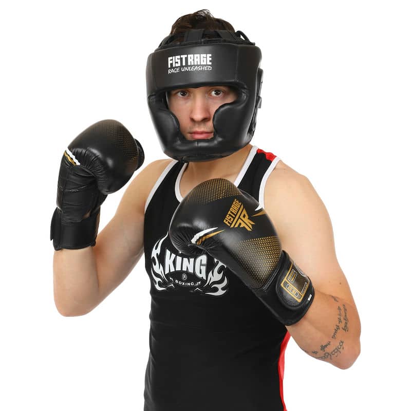 Рукавиці боксерські Fistrage 10 унцій, чорний-золотий, код: VL-4145_10BKY
