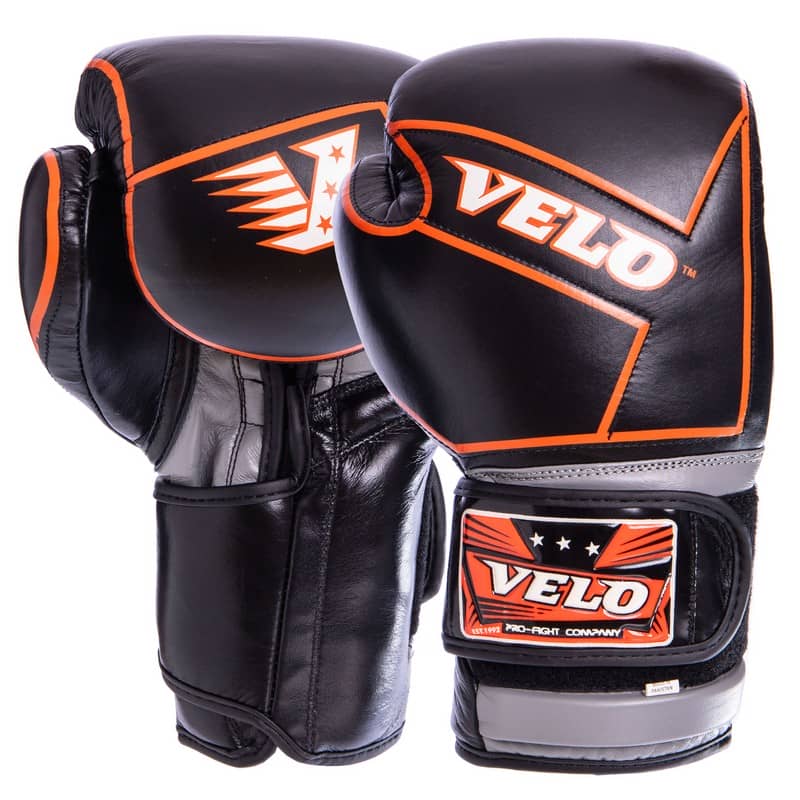 Рукавиці боксерські шкіряні на липучці Velo 10 унцій, чорний, код: VL-2218_10BK-S52