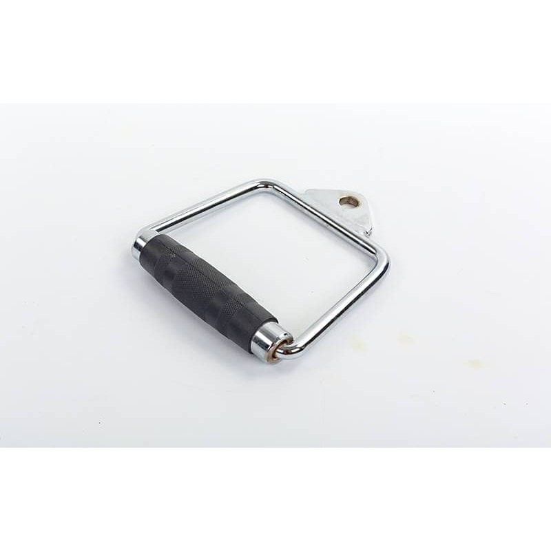Для виготовлення рукояті використовується високоякісна хромована сталь, що гарантує її довговічність. У верхній частині аксесуара приварена проушина, за яку його за допомогою карабіна кріплять до тросу тренажера. Ручка рукоятки дозволяє виконувати вправи під різними кутами і не робить непотрібною навантаження на зап'ясті. Також вона покрита поліуретанової накладкою, що запобігає зісковзування пальців, тим самим знижуючи їх втому. P>