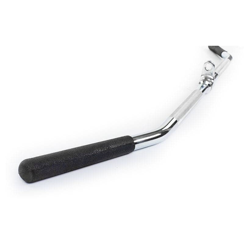 Для виготовлення цього аксесуара використовується високоякісна хромована сталь, що дозволяє тренуватися зі значним навантаженням. Завдяки насічкам та поліуретановим накладкам, розташованим на робочій поверхні, рукоять не ковзає в руках, що забезпечує надійний хват. Підвіс, що обертається, сприяє збереженню вектора навантаження «блок-трос-кисті рук» під час виконання вправи. За рахунок цього трос тренажеру не згинається, що продовжує термін його експлуатації, а саму рукоятку не викручує з рук атлета. , і атлет може зосередитися на роботі м'язів, які він тренує.