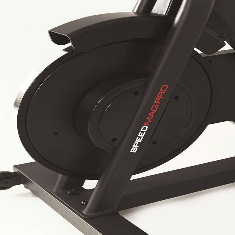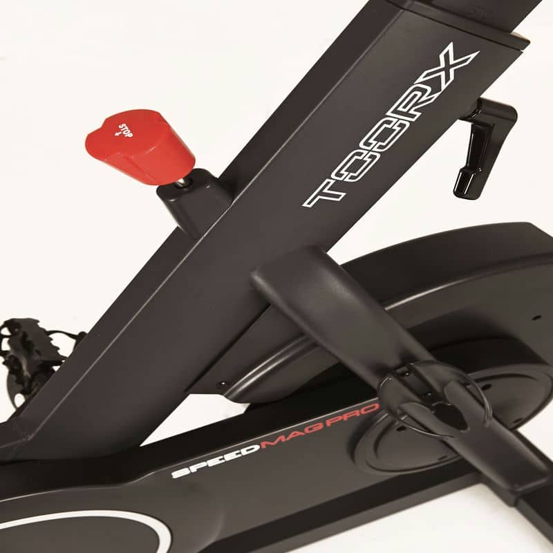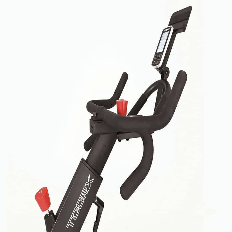 Сайкл-тренажер Toorx Indoor Cycle SRX Speed Mag Pro (SRX-SPEED-MAG-PRO) від італійського виробника Garlando S.p.A. призначений для інтенсивного кардіотренування в домашніх умовах. Тренажер має магнітну гальмівну систему з 24-ма рівнями навантаження, а також сучасний комп'ютер із необхідним набором функцій. Важкий 20-кілограмовий маховик разом з ремінним приводом забезпечують безшумність роботи тренажера та достатнє навантаження навіть для підготовлених спортсменів. Спін байк розрахований на вагу до 130 кг і підійде для користувачів зростом до 2 м. Нагрудний кардіодатчик для бездротового вимірювання пульсу буде доречним під час тренування по одній із чотирьох пульсозалежних програм. Спортивне сидіння і кермо регулюються по висоті та в горизонтальній площині, забезпечуючи індивідуальне налаштування. Транспортувальні ролики в передній частині тренажера дозволяють вільно переміщати його по кімнаті. Консоль тренажера має тримач для смартфона / планшета і підтримує Bluetooth для інтеграції з популярними додатками Kinomap та Zwift, які перетворять монотонне тренування в захоплюючий процес.