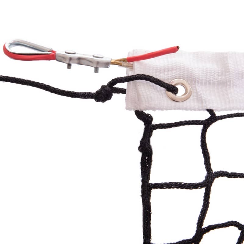 Для обшивки сітки використовується міцна на розрив буксирувальна стрічка. По верхньому краю ширина стрічки становить 5 см, з боків і знизу - 2.5 см. Міцна тканина захищає сітку від пошкоджень. Білий колір стрічки добре контрастує з чорним полотном сітки, дозволяючи візуально виділити її краї для гравців і глядачів.