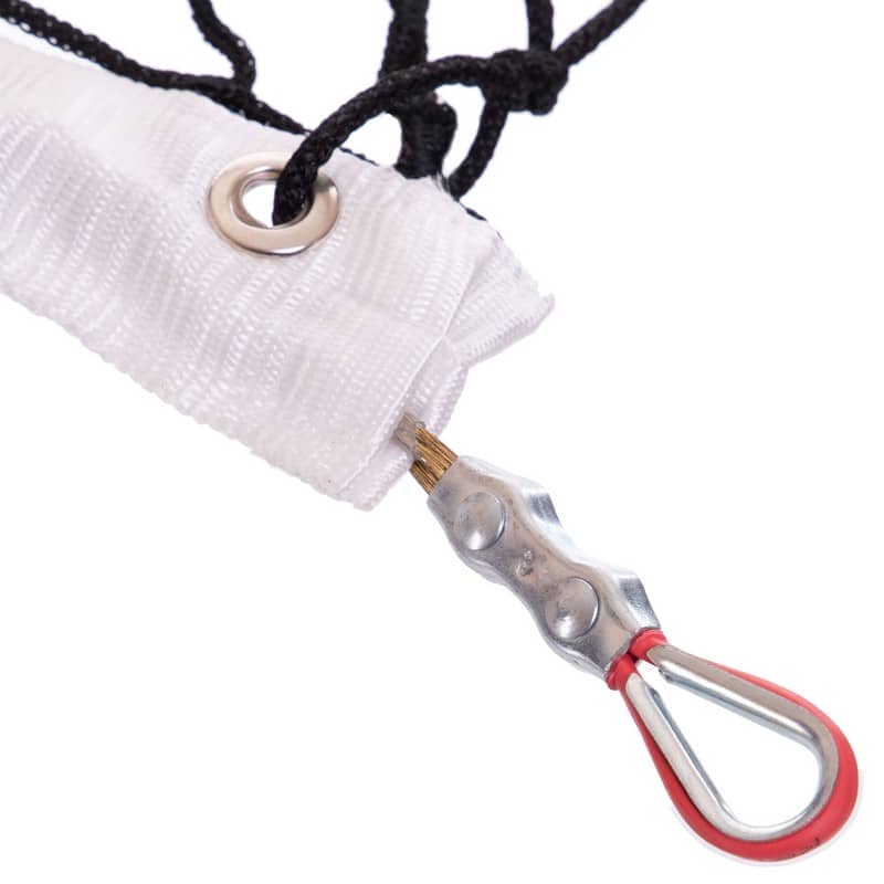 Комплектується 13-метровим сталевим тросом у пластиковій оболонці діаметром 4 мм. Він надає виробу жорсткість і дає змогу закріпити сітку на спеціальних стійках з боків корту.