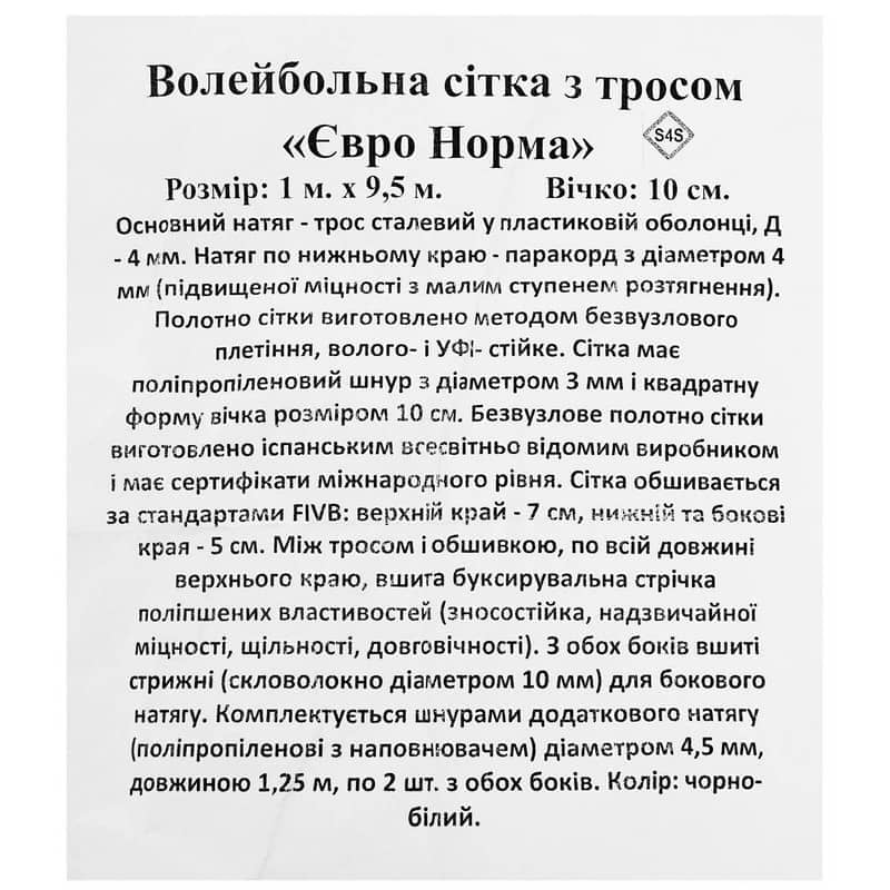 Сітка для волейболу PlayGame Євро норма 9,5x1,0м чорний-білий, код: SO-9556-S52