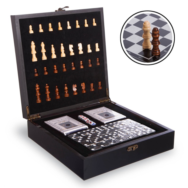 Шахи, доміно, карти 3 в 1 ChessTour чорний, код: W2650_BK