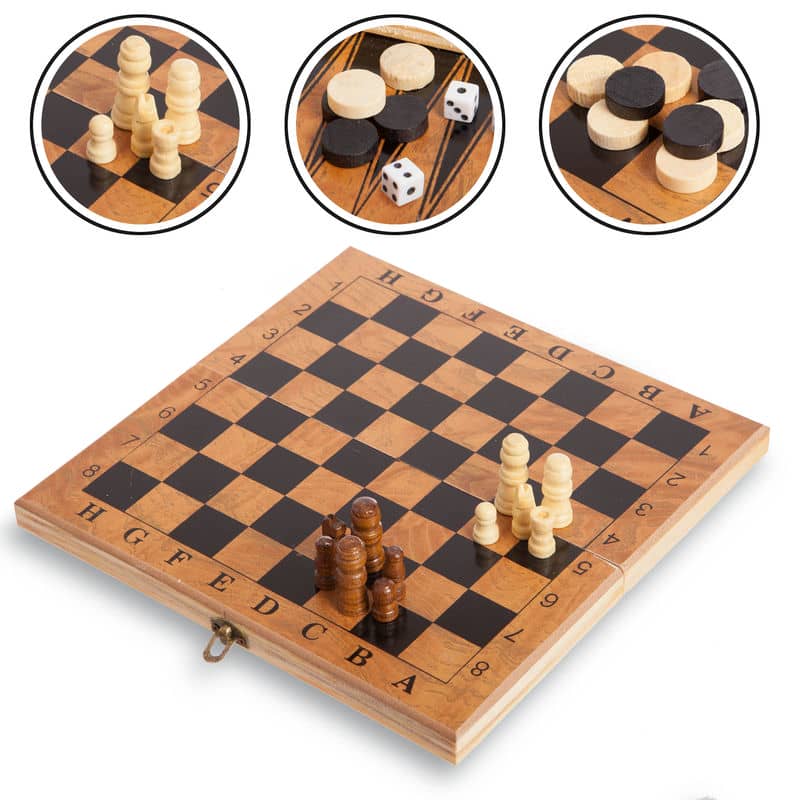 Ігровий процес з таким набором дарує масу задоволення і дозволяє кожному гравцеві проявити свої сильні сторони: у шахах – стратегію та вміння прораховувати ходи, у шашках – швидкість реакції та тактику, а у нардах – вміння ризикувати та знаходити баланс між випадковістю та логічним розрахунком. Завдяки компактним розмірам дошки у складеному вигляді (23×12,5 см) набір зручно зберігати та брати з собою у дорогу, що робить його ідеальним супутником для пікніків, поїздок чи сімейних вечорів. Грати можна удвох, і кожна партія буде особливою, сповненою емоцій та азарту.